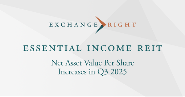 ExchangeRight has announced that The Net Asset Value (“NAV”) per share of the Essential Income REIT has increased for four consecutive quarters, reaching $27.37 per share... Read More