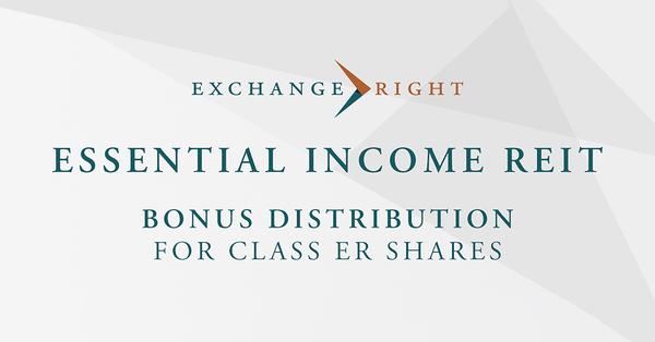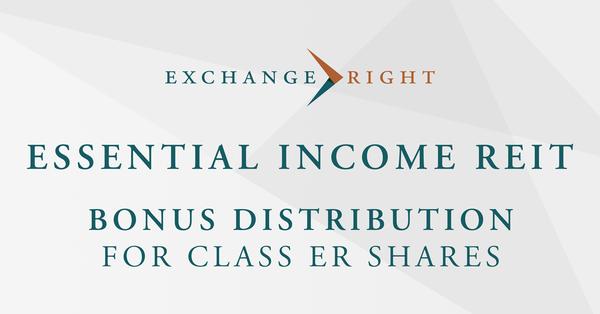 Bonus Distribution to Investors in the Essential Income REIT’s Class ER Shares Brings Total First Year Distribution Rate to 9.58%